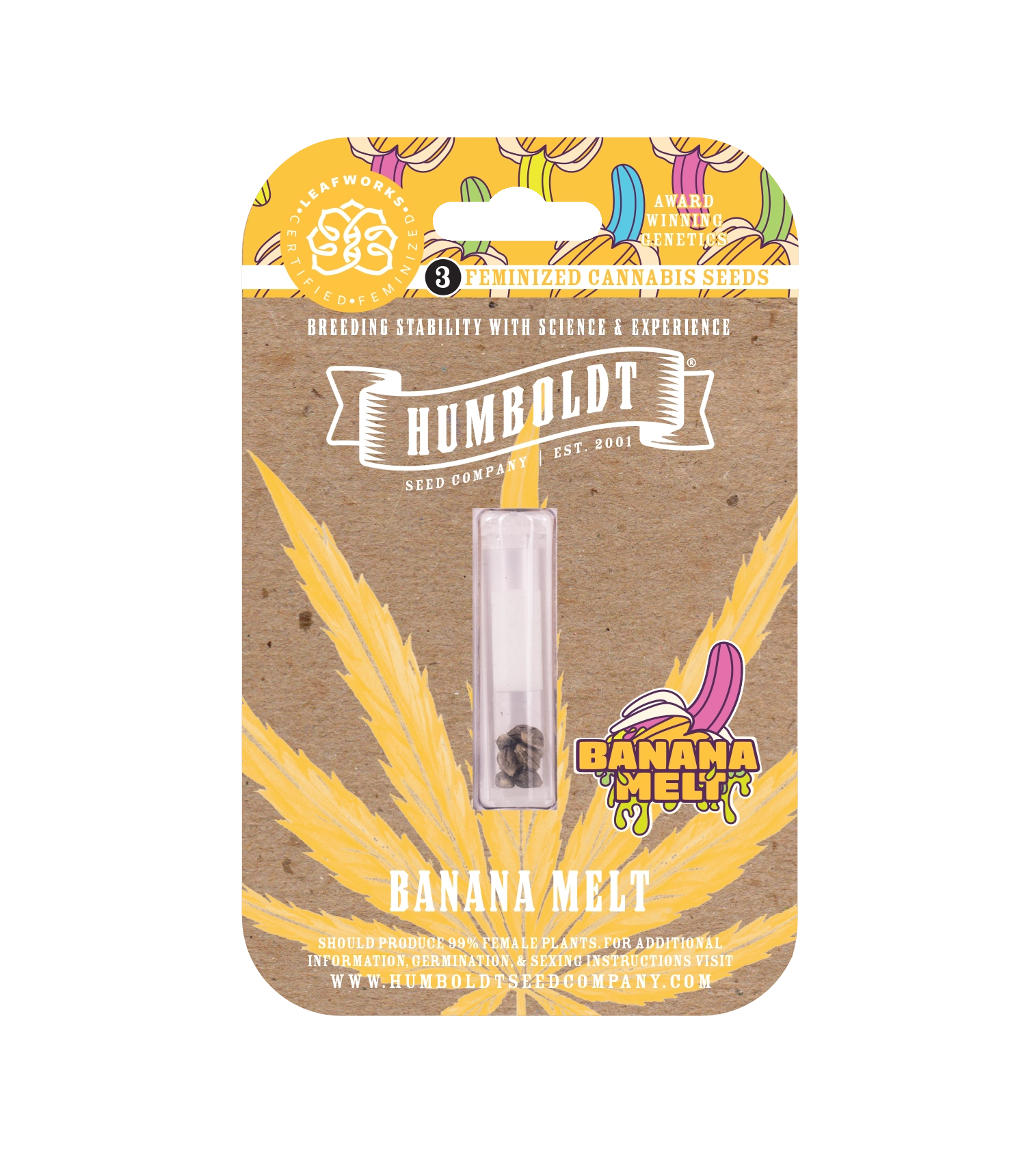 Banana Melt is a potent sativa-dominant hybrid with a tropical flavor profile of ripe bananas, citrus, and pineapple. It provides an energizing and uplifting high, perfect for creativity and focus. It’s great for both indoor and outdoor growing, with strong resistance to mold and disease. It tends to grow tall, so topping is recommended. Ideal for novice growers, it quickly recovers from stress. Some phenotypes display striking Ultraviolet Purple highlights.